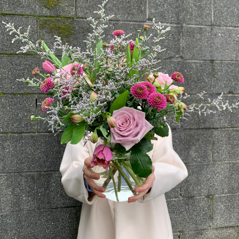 To give your flowers the best chance of being long-lasting, ensure that you cut the stems at a 45-degree angle and trim off leaves below the waterline. By doing this, it creates a larger surface area and helps your flowers absorb more water!
