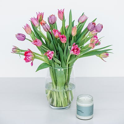 Please give a warm welcome to our Mother's Day Kit! Our very own mum curated this special collection, pairing 3 types of tulips with a beautiful European blown glass vase and her favourite Homecoming Candle. Pricing starts at $39 in Vancouver and $49 in Calgary.