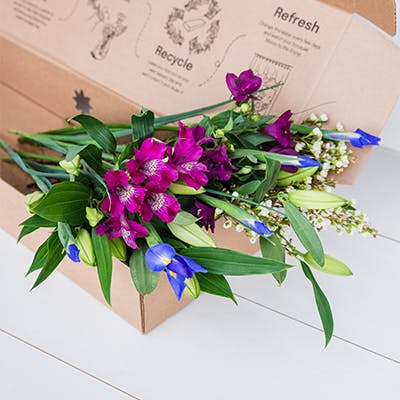 This colourful assortment is one of our favourites. Make sure you keep the water clean and plentiful throughout the week to make your flowers last as long as possible. Your lilies, irises and alstroemeria will all need a few days to open up so just sit back, relax, and watch the blooming happen!