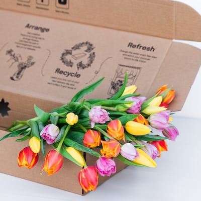These tulips will arrive tightly closed and will take a few days to open up. You can remove the outer leaves or leave them on for a fun, floppy look!
